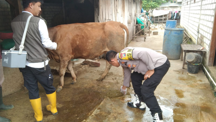 Bangilan, 2 Februari 2025 – Anggota Bhabinkamtibmas Polsek Bangilan melakukan kegiatan pengawasan untuk pencegahan Penyakit Mulut dan Kuku (PMK) pada ternak sapi di wilayah desa binaannya. Kegiatan ini merupakan bagian dari upaya pemerintah dan pihak kepolisian dalam mencegah penyebaran penyakit menular yang dapat merugikan peternak.