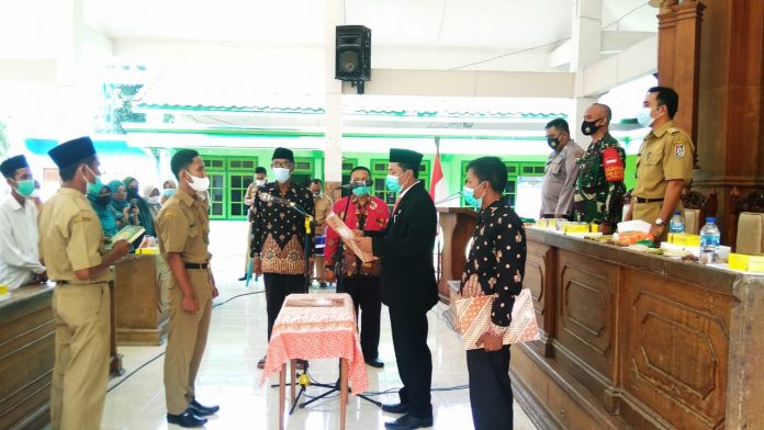 seopini.com-polrestubanpoldajatim Polsek Plumpang Bhabinkamtibmas Desa Kebomlati Kecamatan Plumpang mengahdiri acara Pengambilan Sumpah dan Pelantikan Pengangkatan Desa plandirejo yang dilaksanakan di Pendopo Desa plandirejo Kecamatan Plumpang Kabupaten Tuban. Senin sore, (05/04/2021).