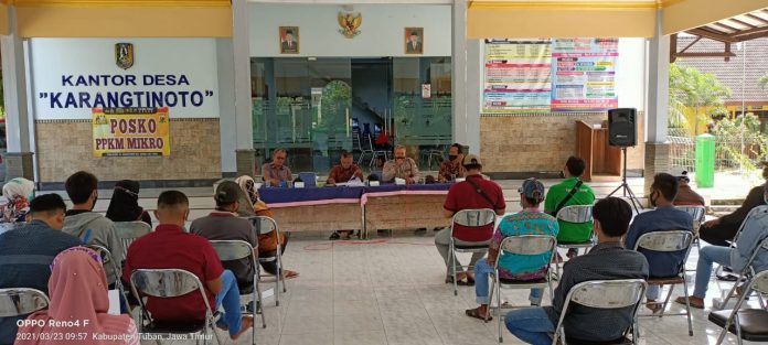 seopini.com-polrestubanpoldajatim Bhabinkamtibmas Desa Karangtinoto Polsek Rengel Polres Tuban Aiptu Suwarjo menggelar sosialisasi penerimaan anggota Polri tahun 2021 di Balai Desa setempat. Rabu, (24/03/2021).