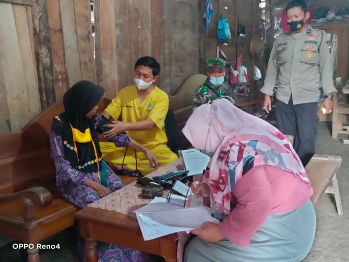 Bhabinkamtibmas Polsek Senori Polres Tuban Berikan Pengamanan Vaksinasi Secara Door to Door