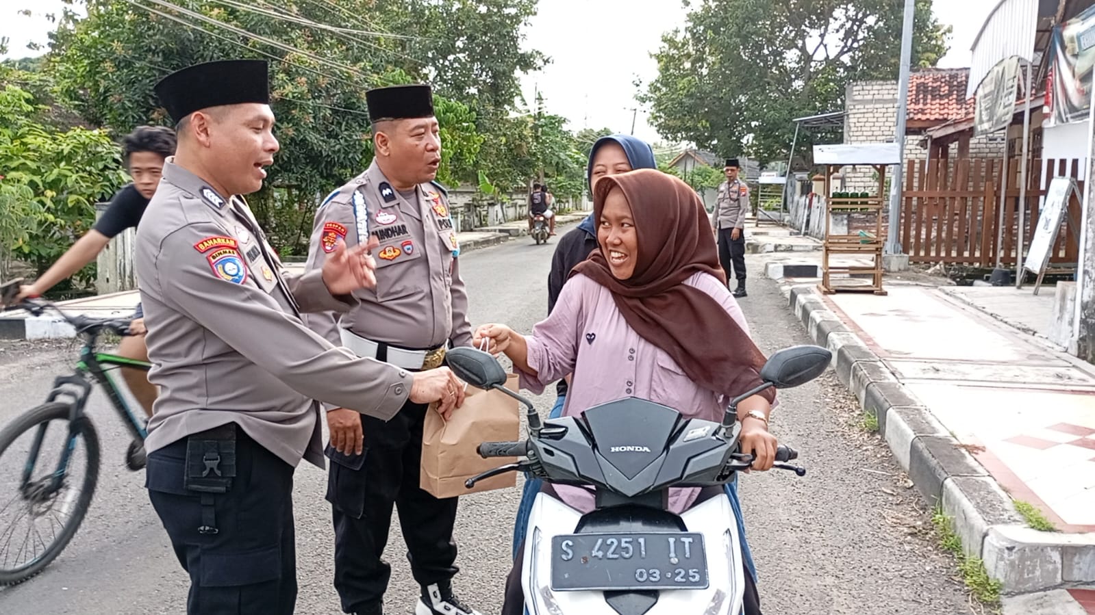 “Bagi-bagi takjil merupakan momen terbaik dapat memberikan manfaat kepada sesama, terutama kepada para pengguna jalan yang tidak sempat berbuka puasa bersama keluarga” ucap Kapolsek.