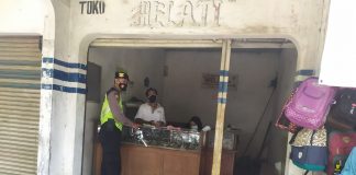Door to Door Polsek Senori Polres Tuban Berikan Himbauan Pemilik Toko Terapkan Protokol Kesehatan