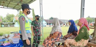 Giat Yustisi Polsek Senori Polres Tuban Berikan Himbauan Protokol Kesehatan Kepada Emak-emak