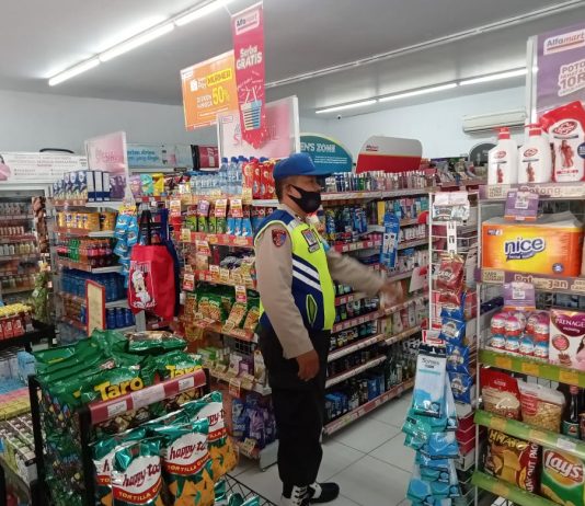 Door to Door Polsek Senori Polres Tuban Berikan Himbauan Pemilik Toko Terapkan Protokol Kesehatan