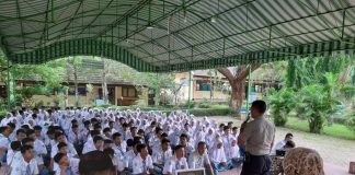 POLSEK TUBAN BERSAMA PUSKESMAS TUBAN MELAKSANAKAN SOSIALISASI VIRUS CORONA DI SMAN 2 TUBAN