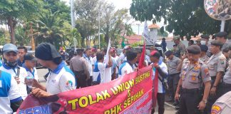 KAPOLSEK TUBAN BERSAMA ANGGOTA MELAKSANAKAN PENGAMANAN AKSI UNJUK RASA OLEH FSPMI