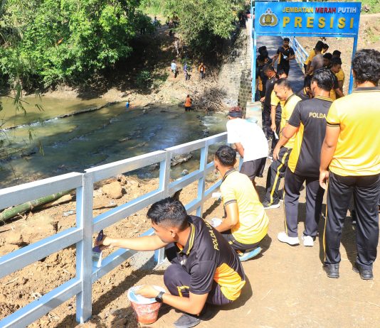 Polres Ngawi Rampungkan Perbaikan Jembatan Merah Putih Presisi di Blandongan