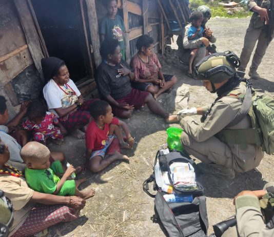 Satgas Damai Cartenz Laksanakan Patroli dan Layanan Kesehatan di Pengungsian Gigobak Sinak, Wujud Nyata Kepedulian kepada Warga