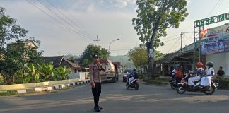 Layani Pengguna Jalan Raya, Personil Polsek Singgahan Polres Tuban Lakukan Pengaturan Pagi Hari