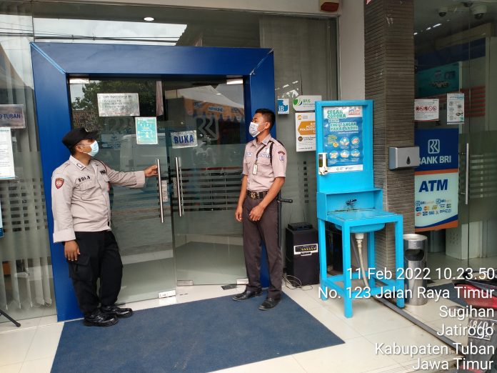 Dalam rangka menciptakan situasi Kamtibmas yang Aman dan Kondusif Polsek Jatirogo Polres Tuban melaksanakan patroli di ATM Bank BRI. Jumat, (11/2/2022).