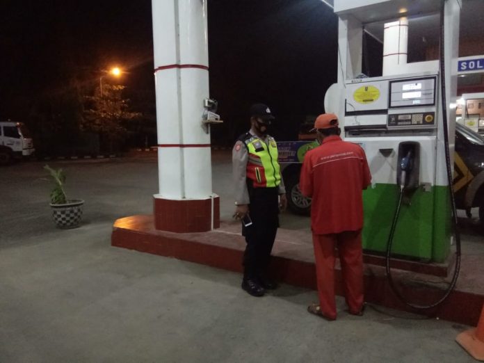 Anggota Kepolisian Sektor Rengel Polres Tuban menggelar patroli obyek vital malam hari ke SPBU yang berada di Desa Pekuwon Kecamatan Rengel Kabupaten Tuban. Sabtu malam, (05/06/2021).