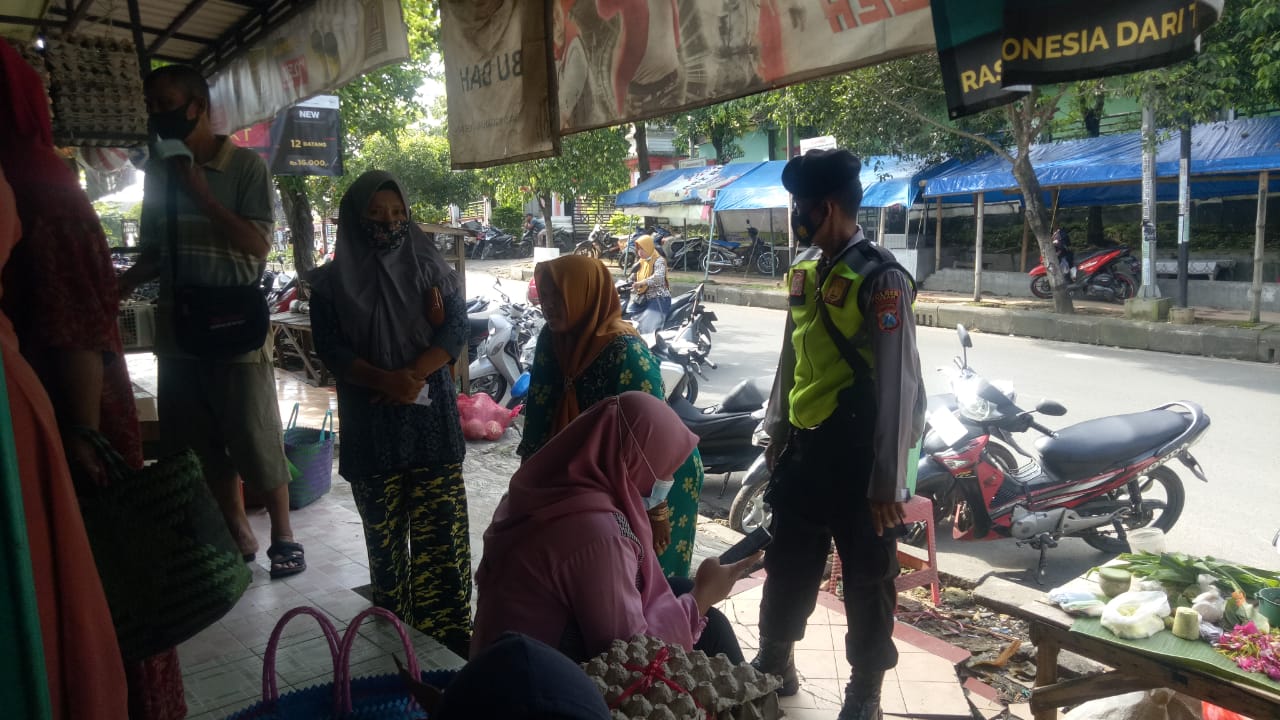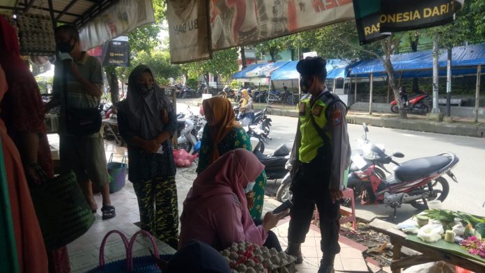 Home Uncategorized Cegah Penyebaran Covid-19. Diwilayahnya, Polsek Singgahan Rutin Himbau Warga Dipasar