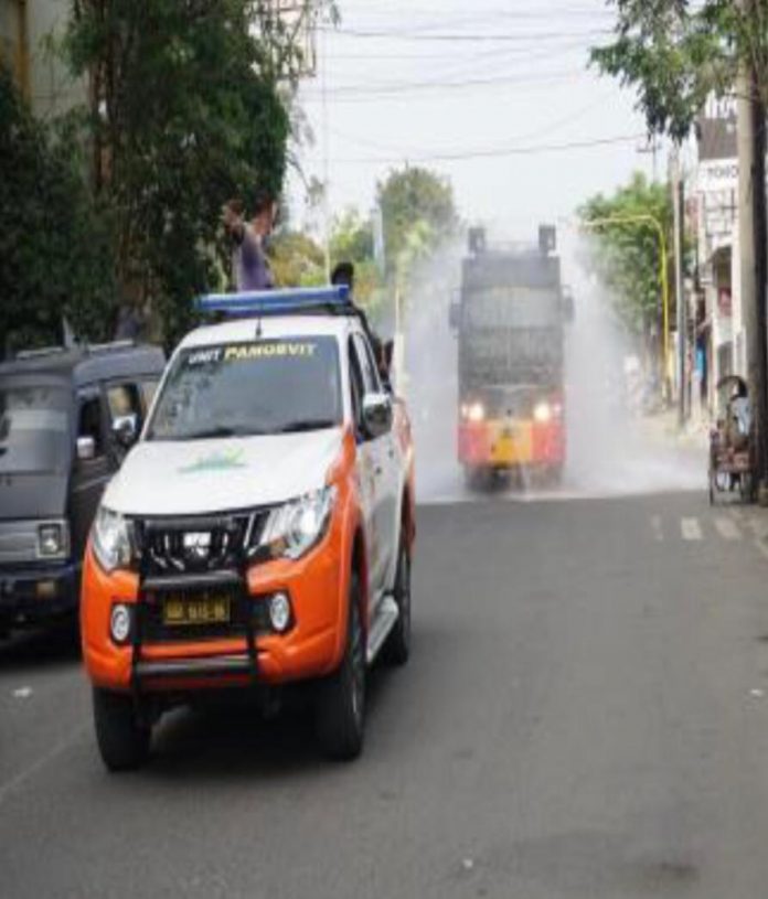 “Penyemprotan disinfektan oleh Ditsamapta Polda Jatim di Kecamatan prioritas. Kegiatan penyemprotan disinfektan menggunakan kendaraan Gunner sebanyak 6.000 Liter oleh PMI Provinsi Jatim, dengan route Jalan sekeliling wilayah Kecamatan Arosbaya dan Kecamatan Klampis,” paparnya Kapolda Jawa Timur.