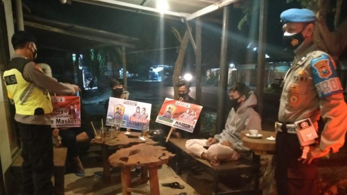 CEGAH PENYEBARAN COVID-19, POLSEK JATIROGO POLRES TUBAN MELAKSANAKAN GIAT YUSTISI PENDISIPLINAN PROTOKOL KESEHATAN