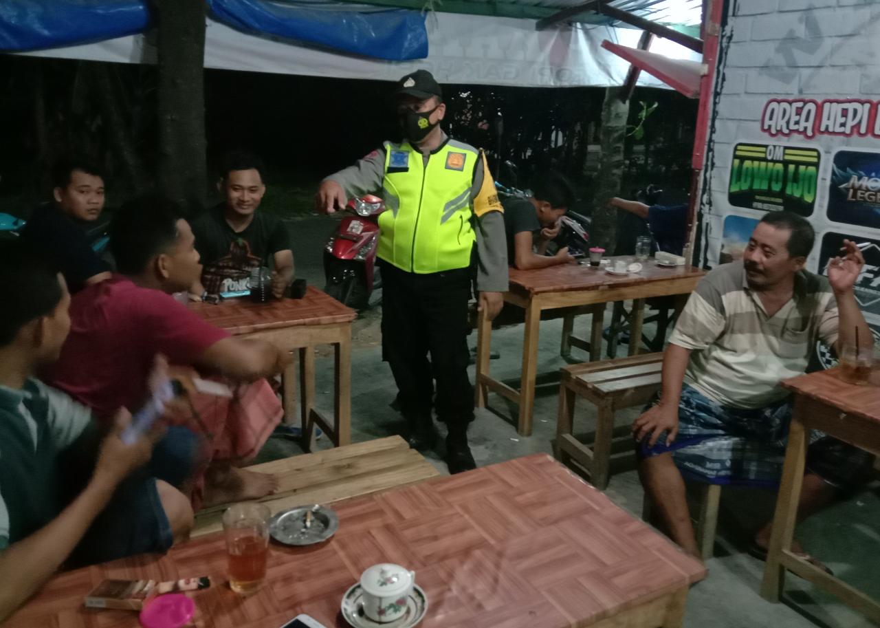 seopini.com-polrestubanpoldajatim Patroli Polsek Plumpang pada Selasa malam (09/03/2021) saat mengimbau warga menggunakan masker serta patuhi protokol kesehatan, pada tempat umum di wilayah Kecamatan Plumpang Kab Tuban.