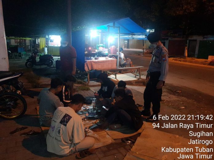 seopini.com – PolresTubanPoldaJatim Dalam rangka menekan angka penularan Covid-19 Polsek Jatirogo melaksanakan Giat Yustisi Pendisiplinan Protokol Kesehatan. Minggu malam, 6/2/2022