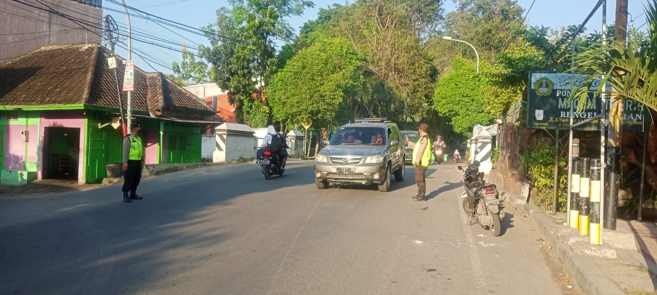Ciptakan Kamseltibcar Lantas, Polsek Rengel Polres Tuban Lakukan Pengaturan Lalu Lintas Saat Pagi Hari