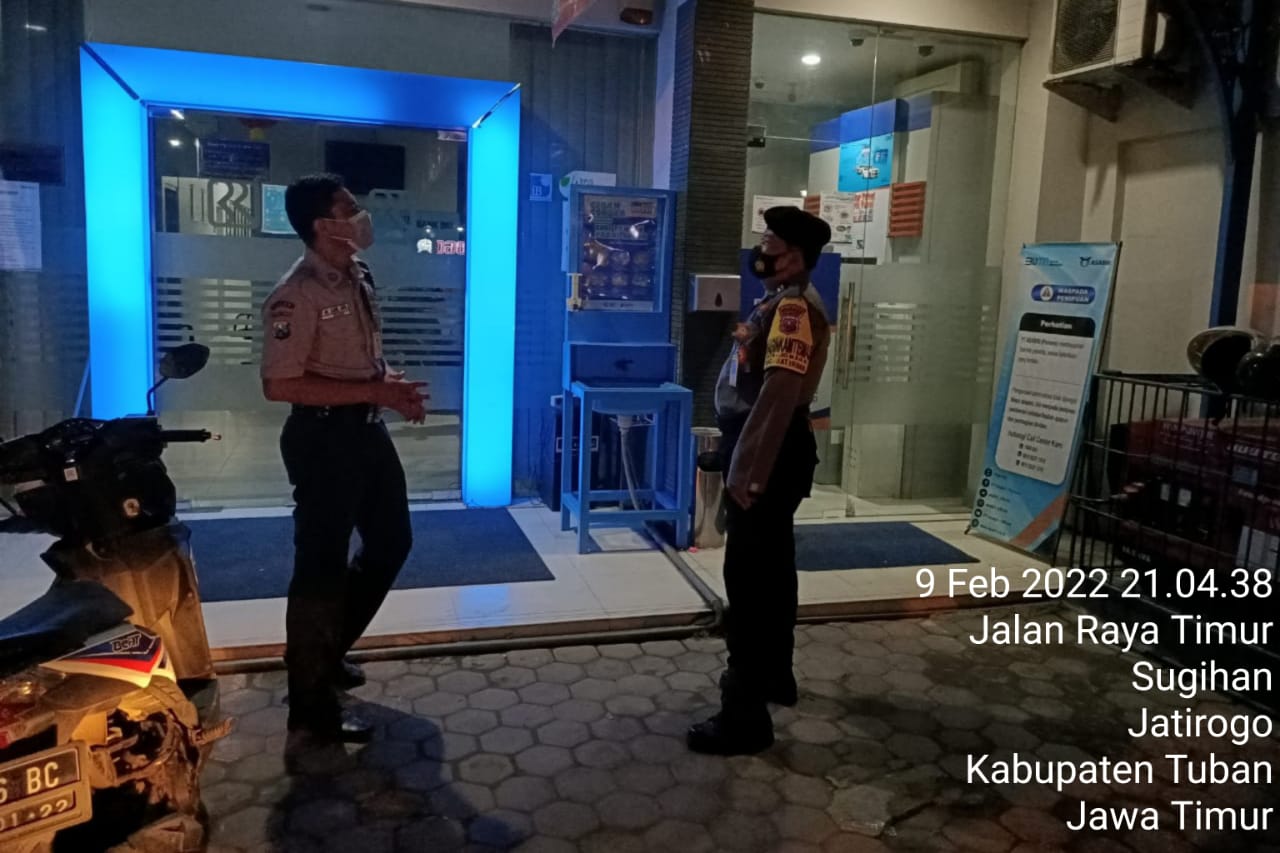 seopini.com – PolresTubanPoldaJatim Dalam rangka menciptakan situasi Kamtibmas yang Aman dan Kondusif Polsek Jatirogo Polres Tuban melaksanakan patroli di ATM Bank BRI. Rabu malam, (9/2/2022).