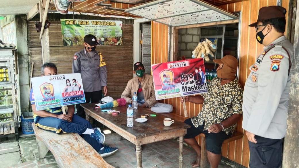 DALAM RANGKA MEMUTUS MATA RANTAI PENYEBARAN COVID-19, POLSEK JATIROGO POLRES TUBAN MELAKSANAKAN GIAT YUSTISI PENDISIPLINAN PROTOKOL KESEHATAN