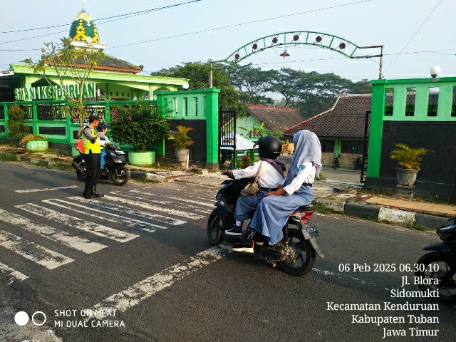 TUBAN, Kenduruan,- Kehadiran anggota Polsek Kenduruan Polres Tuban di bawah kepemimpinan AKP J. Mintoro  dalam melayani masyarakat, salah satunya adalah melakukan pelayanan pagi hari terhadap Kamtibselcarlantas atau Keamanan, Ketertiban, Keselamatan, Kelancaran Lalu-Lintas, Kamis (06/02/2025)