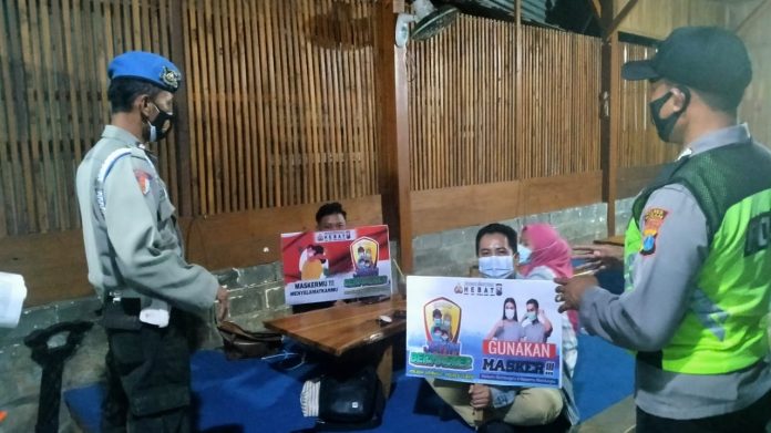 DEMI MENEKAN PENYEBARAN COVID-19, POLSEK JATIROGO POLRES TUBAN MELAKSANAKAN GIAT YUSTISI PENDISIPLINAN PROTOKOL KESEHATAN