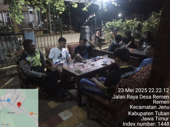 Bhabinkamtibmas melaksanakan kegiatan sambang desa Anti balap liar, judol serta perkelahian antar pemuda Aipda Okky selaku  bhabinkamtibmas Ds. Remen Kec. Jenu Kab. Tuban., beserta regu patroli melaksanakan himbauan Kamtibmas di warkop yang kebetulan ada para pemuda yang sedang berkumpul, bila di jumpai adanya balap liar ataupun para pemuda yang mabuk serta bergerombol akan di bubarkan atau di ambil tindakan oleh pihak Bhabinkamtibmas polsek Jenu polres Tuban. Tak henti hentinya kita himbau untuk tidak melakukan kegiatan balap liar yang mengganggu pengguna jalan lain yg melintas di jln poros desa, dan Alhamdulillah tidak ada kegiatan balap liar namun kami tetap melaksanakan pemantauan dan pengaturan arus lalin untuk mengatisipasi laka lantas, tawuran antar pemuda, serta antisipasi 3C sembari memberikan pelayanan kepada masyarakat.