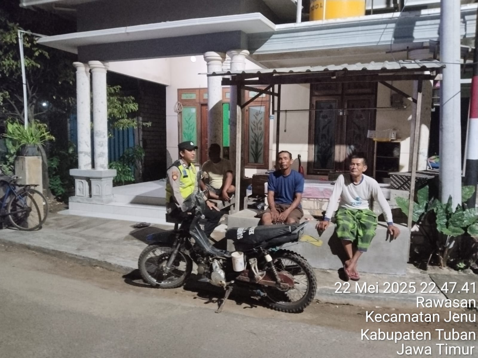 Bhabinkamtibmas Ds. Rawasan Brigadir Samdo melaksanakan sambang di pemukiman warga pada jam jam yang di anggap rawan. Ini di lakukan untuk memberi rasa aman dan nyaman kepada masyarakat Kec. Jenu Kab. Tuban.