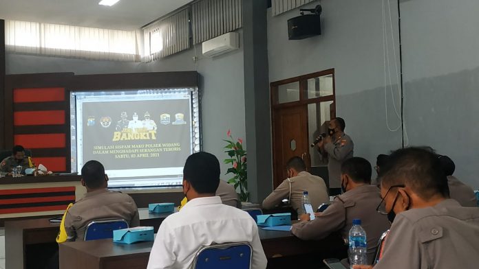 seopini.com-polrestubanpoldajatim Bertempat di Gedung Sanika Satyawada Polres Tuban, Kapolsek Widang AKP Totok Wijanarko, S.Pd., memaparkan tentang Optimalisasi Sistim Pengamanan Mako Polsek dari ancaman serangan pelaku teror, Senin (05/04/2021).