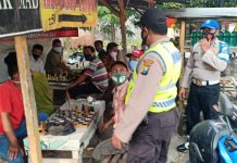 Kepada para konsumen, aparat keamanan dengan cara yang humanis menghimbau untuk menjaga jarak aman minimal 1,6 meter untuk mencegah penularan Virus yang belum ditemukan obatnya tersebut.