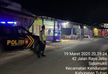 seopini.com-polrestubanpoldajatim Anggota Polsek Senori Polres Tuban Jawa Timur, yang dipimpin oleh Ps, Kanit Provost Aipda Ahmadi melaksanakan patroli door to door di toko-toko yang ada di wilayah Kec, Senori guna memberikan himbauan kepada pemilik, karyawan dan konsumen untuk menggunakan Masker dan menerapkan physical distancing saat belanja dan antri di depan Kasir, Selasa (2/3/2021) siang.