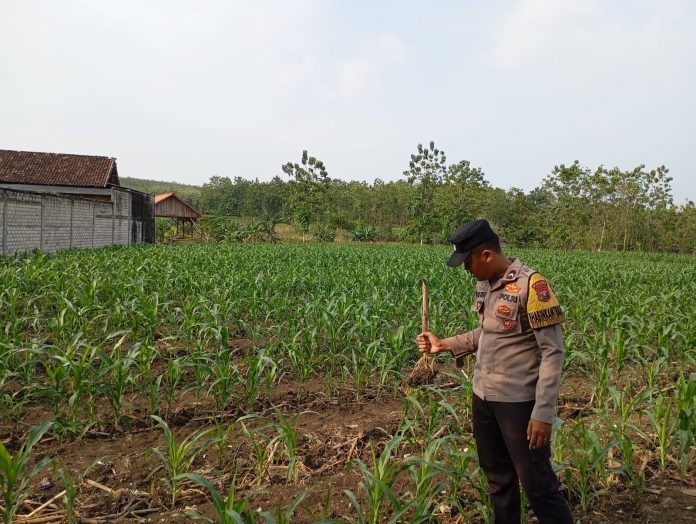 Dukung Ketahanan Pangan Nasional, Bhabinkamtibmas Polsek Kenduruan Polres Tuban Mengecek Tanaman Jagung Milik Warga Desa Binaan