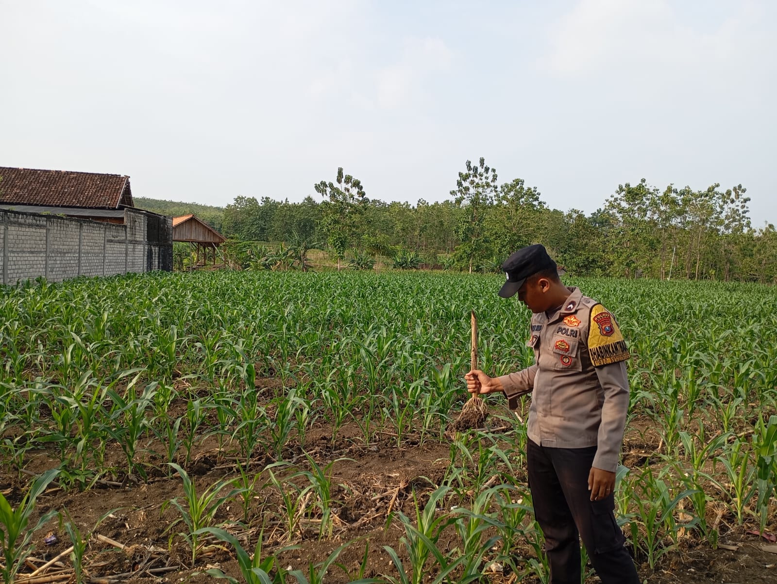 Dalam kegiatan tersebut, Bhabinkamtibmas turun langsung ke lahan pertanian untuk memantau kondisi tanaman jagung, mengecek kesuburan tanaman, serta memastikan tidak ada kendala yang dihadapi para petani. Selain memantau perkembangan lahan, Bhabinkamtibmas juga memberikan motivasi dan semangat kepada para petani agar tetap konsisten mengelola lahan pertaniannya demi meningkatkan hasil panen.