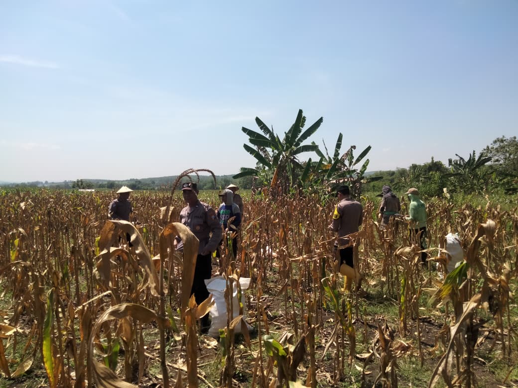 Dengan mengenakan seragam dinas, para anggota Polsek Kenduruan tampak antusias membantu memetik dan mengupas jagung bersama para petani. Mereka juga turut membantu mengemas hasil panen ke dalam karung-karung untuk kemudian dibawa ke tempat penampungan.