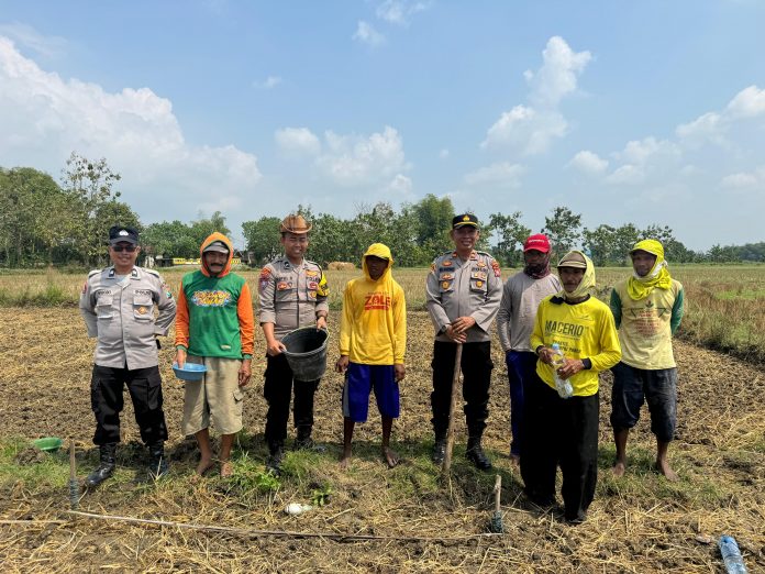 Senori – Dalam rangka mendukung program Ketahanan Pangan Nasional, khususnya di wilayah Kecamatan Senori. Kapolsek Senori Polres Tuban Polda Jatim Iptu Sudjarwo, S.H., memimpin anggota Polsek Senori melaksanakan kegiatan menanam jagung bersama warga di Desa Sendang Kecamatan Senori, Selasa (5/8/2025) pagi.
