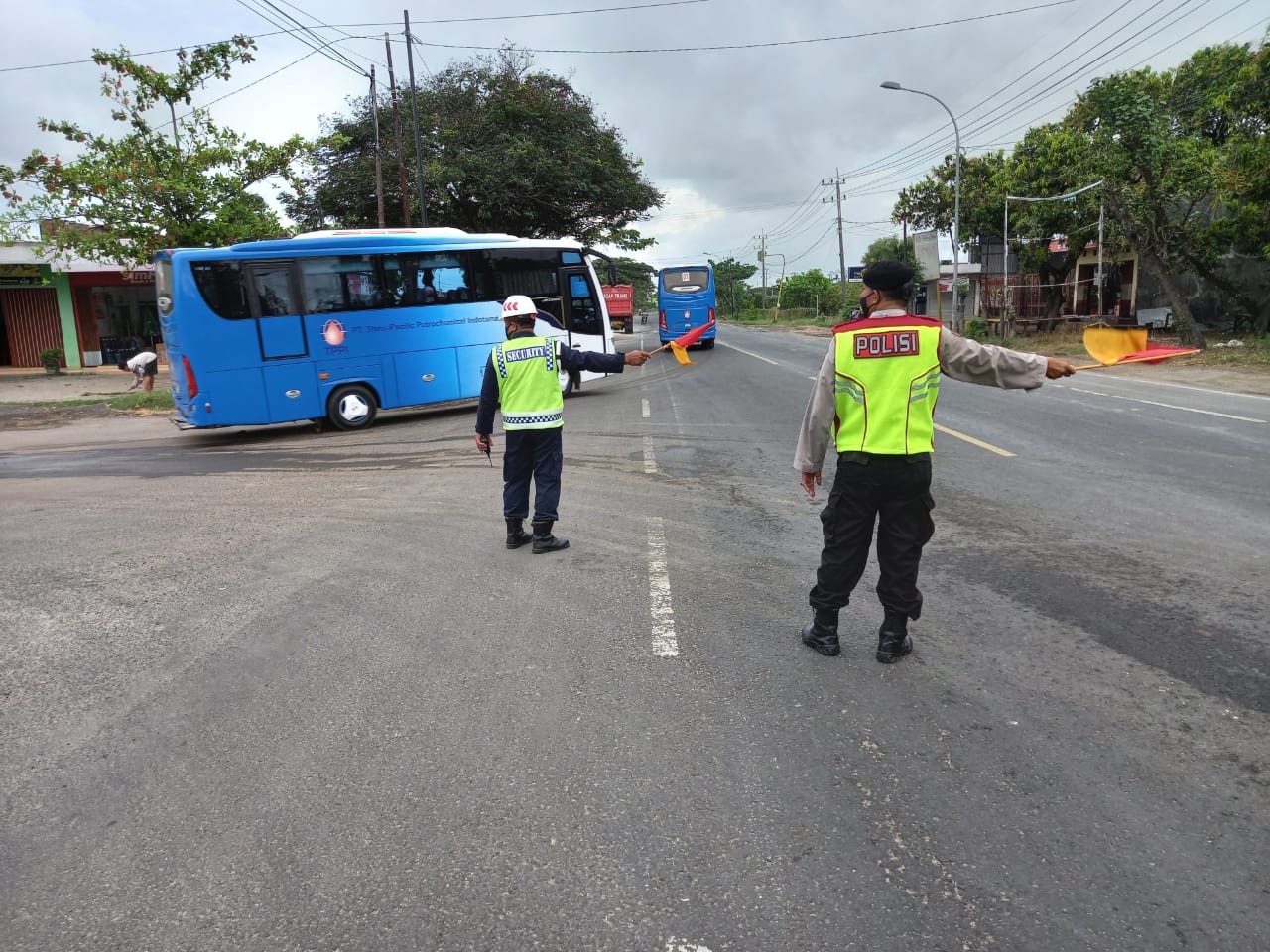 seopini.com-polrestubanpoldajatim Polsek jenu polres Tuban melaksanakan gatur lalin jalur Pantura simpang 3 pos Purworejo, ini rutin kita lakukan mengingat banyak kendaraan yang keluar masuk perusahaan dan di khawatirkan tindak pidana meningkatkan khususnya di kawasan yang jarak pemukiman satu dengan lainya jauh dan sepi biasanya kesempatan untuk melakukan tindakan kejahatan terjadi sehingga polsek jenu melaksanakan stand by dan bantu penyebrangan keluar masuk kendaraan yang akan di perusahaan. Antisipasi laka lantas serta pelemparan terhadap kaca mobil penggunaan jalan.