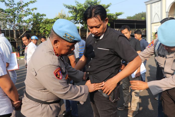 Sebagai bagian dari prosedur pengamanan, seluruh personel dilarang membawa senjata api maupun senjata tajam saat bertugas di lapangan. Hal ini dilakukan untuk mencegah potensi eskalasi dan menjaga situasi tetap kondusif selama kegiatan berlangsung.
