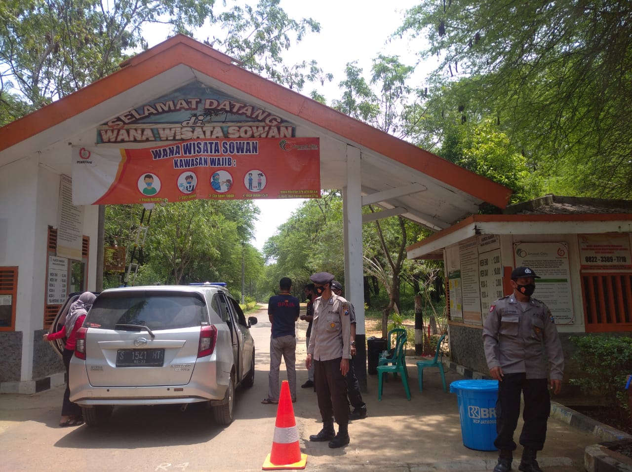 Dalam giatnya petugas patroli selain membantu petugas jaga diloket karcis, petugas juga berikan Himbuan pengunjung agar mentaati tata tertib pada saat berada dilokasi Tempat wisata, apalagi kita masih ditengah tengah Pandemi Covid diharuskan pengunjung wisata Mematuhi Protokol Kesehatan dengan memakai masker dan sebelum masuk untuk mencuci tangan ditempat yang sudah disiapkan serta mengurangi aktifitas berkerumun.