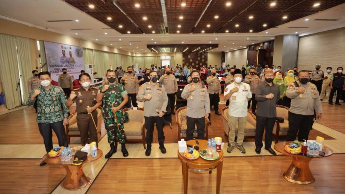 Kapolda Jawa Timur Irjen Pol Nico Afinta didampingi Forkopimda Kabupaten Pasuruan, menggelar vaksinasi baik tahap 2 dan 3, jenis Sinovac dan Astrazaneca sebanyak 200 dosis.
