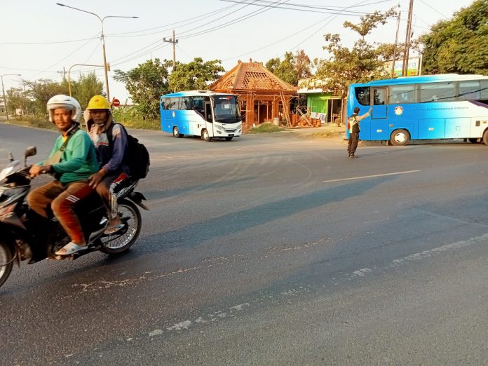 Anggota patroli polsek jenu polres Tuban melaksanakan gatur lalin jalur Pantura simpang 3 pos Purworejo, ini rutin kita lakukan mengingat banyak kendaraan yang keluar masuk perusahaan dan di khawatirkan tindak pidana meningkatkan khususnya di kawasan yang jarak pemukiman satu dengan lainya jauh dan sepi.