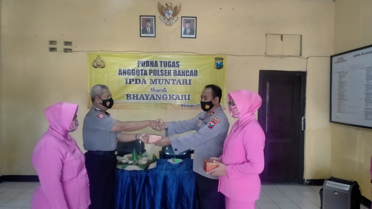 seopini.com-polrestubanpoldajatim Polsek Bancar Polres Tuban Melaksanakan kegiatan tasyakuran dalam rangka Purna Tugas Ipda Muntari (58) Tahun mengabdi dalam tugas kepolisian Negara Republik Indonesia bertempat di gedung Polsek Bancar Polres Tuban.