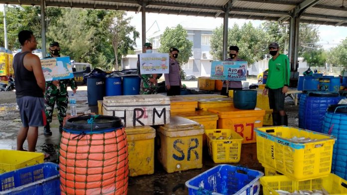 Pada kesempatan siang itu di lakukan oleh anggota Polsek Bancar bersama Koramil Bancar Melaksanakan giat YUSTISI Pendisiplinan Protokol Kesehatan dengan sasaran masyarakat nelayan bertempat di Pelabuhan Perikanan Pantai bulu Ds Bulu Meduro kecamatan Bancar Tuban.