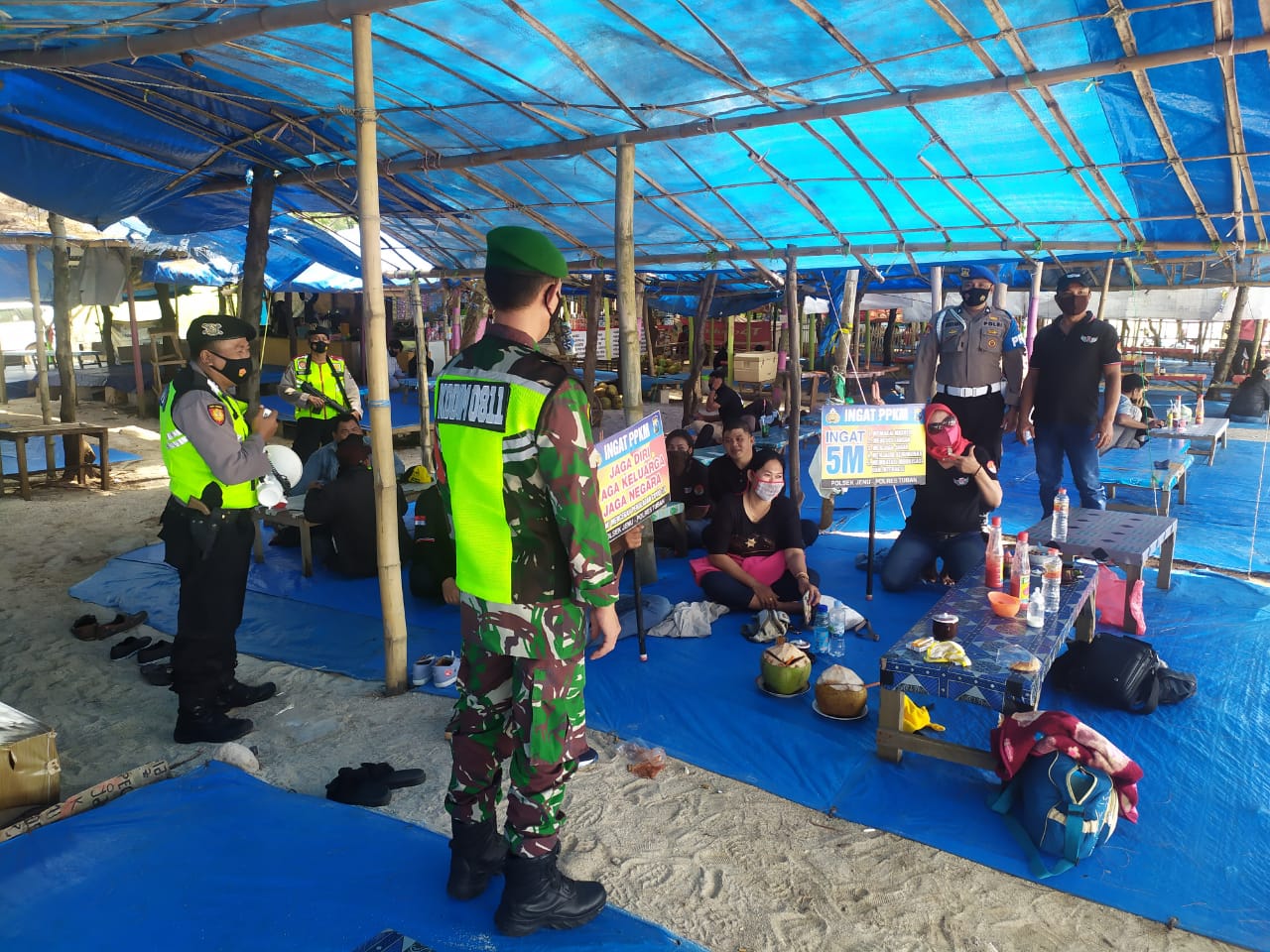 seopini.com-polrestubanpoldajatim nggota Polsek Jenu polres Tuban menghimbau pengunjung tempat wisata untuk selalu mentaati protokol kesehatan dengan 5M (memakai masker, mencuci tangan,menjaga jarak, mengurangi mobilitas, menjahui kerumunan) kepada pengelola tempat wisata untuk menyediakan alat untuk cuci tangan. Bila di dapati Pengunjung yang tidak memakai masker untuk selalu di ingatkan, di harapkan pengelola pasar beserta Pengunjung mentaati Protokol Kesehatan Mengingat Tuban zona kuning perlu kesadaran dari warga Tuban untuk selalu 5M dalam melakukan kegiatan di luar rumah, anggota Polsek Jenu juga menitipkan pesan kamtibmas kepada pengunjung tempat wisata untuk menghindari berita berita yg berbau sara dan hoax yang dapat memecah keutuhan bangsa.