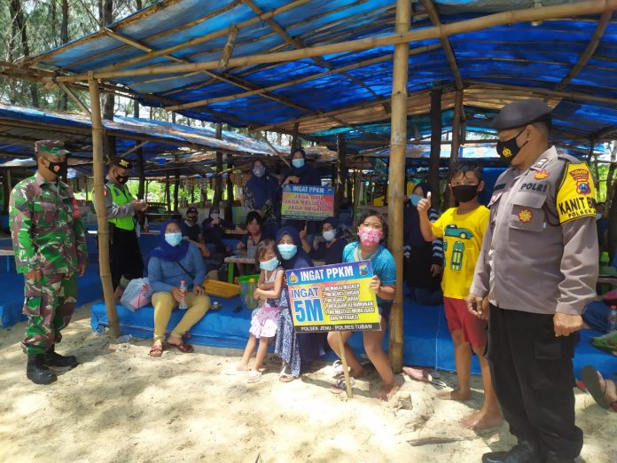 seopini.com-polrestubanpoldajatim Polsek jenu polres Tuban giat yustisi gabungan dengan rekan Koramil Jenu seperti pada hari Minggu 14/03/2021, menghimbau serta mengedukasi pengunjung tempat wisata mengajak agar mentaati protokol kesehatan dalam keseharian baik di dalam lingkungan keluarga maupun saat di luar rumah seperti saat ini, menjahui kerumunan juga di wajibkan mengingat penyebaran virus covid 19 belum berakhir. Pengunjung juga di harapkan peduli dan peka dengan situasi keamanan (penempatan barang bawaan dan anak anak yang bermain di laut) serta untuk selalu mentaati protokol kesehatan.