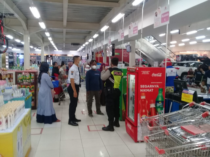 Giat Yustisi Prokes dengan memberikan himbauan dan mengajak seluruh pengunjung tempat perbelanjaan modern untuk tetap disiplin prokes. Hal ini dilakukan selain untuk menekan lajunya penyebaran covid-19 juga memberikan kesadaran kepada masyarakat akan pentingnya disiplin prokes dimasa pandemi covid-19.