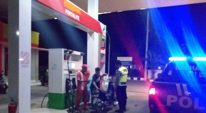 Guna mencegah terjadinya tindak kejahatan seperti curat, curas dan curanmor, anggota Polsek Singgahan Polres Tuban melaksanakan patroli dialogis di SPBU di Desa Lajolor Kecamatan Singgahan Kabupaten Tuban. Sabtu malam (1/2/2020)