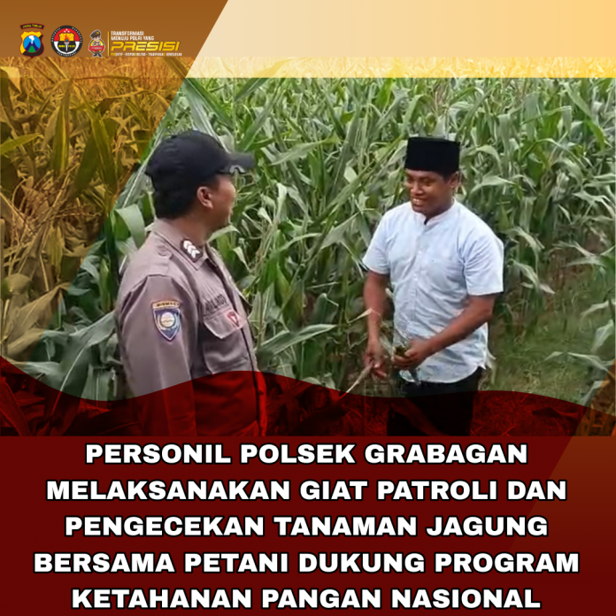 Polri dalam hal ini Polda Jatim khususnya Polres Grabagan mendukung program ketahanan pangan guna mewujudkan swasembada pangan Indonesia. Salah satu upaya nyata diwujudkan melalui kehadiran bhabinkamtibmas Desa Grabagan Polsek Grabagan Polres Tuban Polda Jatim melaksanakan kunjungan ke perkarangan milik warga Desa Grabagan kecamatan Grabagan Kabupaten Tuban.