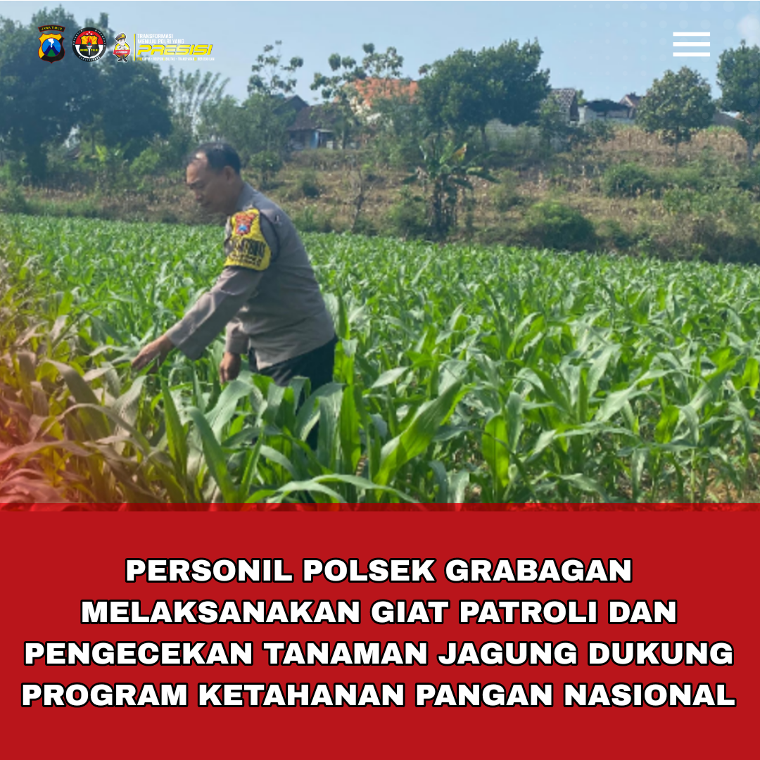 Polri dalam hal ini Polda Jatim khususnya Polres Grabagan mendukung program ketahanan pangan guna mewujudkan swasembada pangan Indonesia. Salah satu upaya nyata diwujudkan melalui kehadiran bhabinkamtibmas Desa Grabagan Polsek Grabagan Polres Tuban Polda Jatim melaksanakan kunjungan ke perkarangan milik warga Desa Grabagan kecamatan Grabagan Kabupaten Tuban.