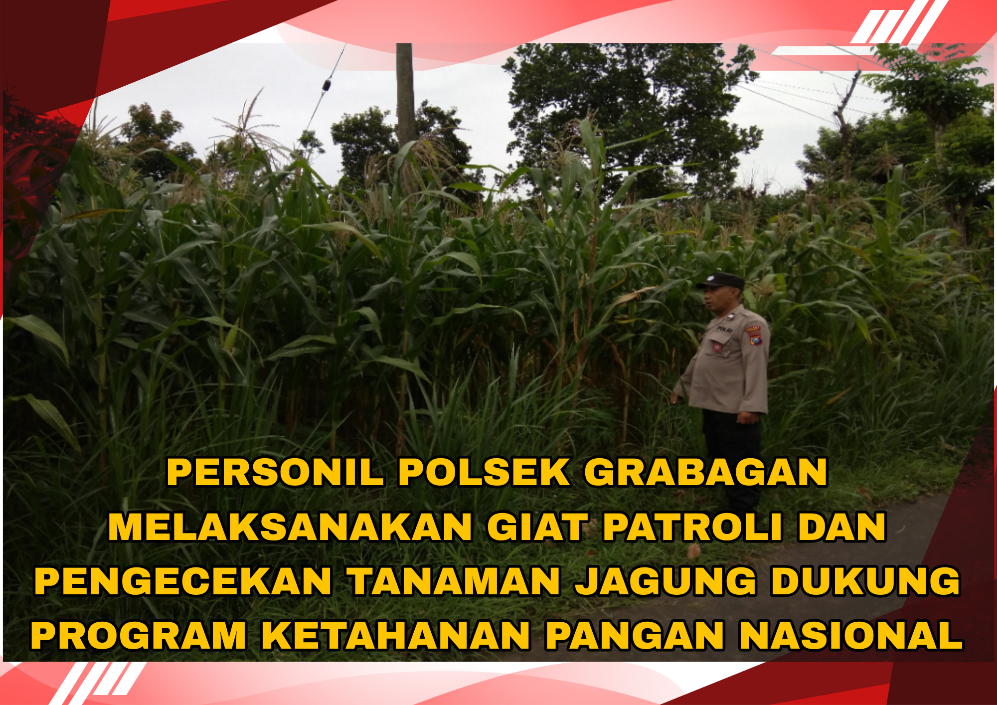 Polri dalam hal ini Polda Jatim khususnya Polres Grabagan mendukung program ketahanan pangan guna mewujudkan swasembada pangan Indonesia. Salah satu upaya nyata diwujudkan melalui kehadiran bhabinkamtibmas Desa Grabagan Polsek Grabagan Polres Tuban Polda Jatim melaksanakan kunjungan ke perkarangan milik warga Desa Grabagan kecamatan Grabagan Kabupaten Tuban.