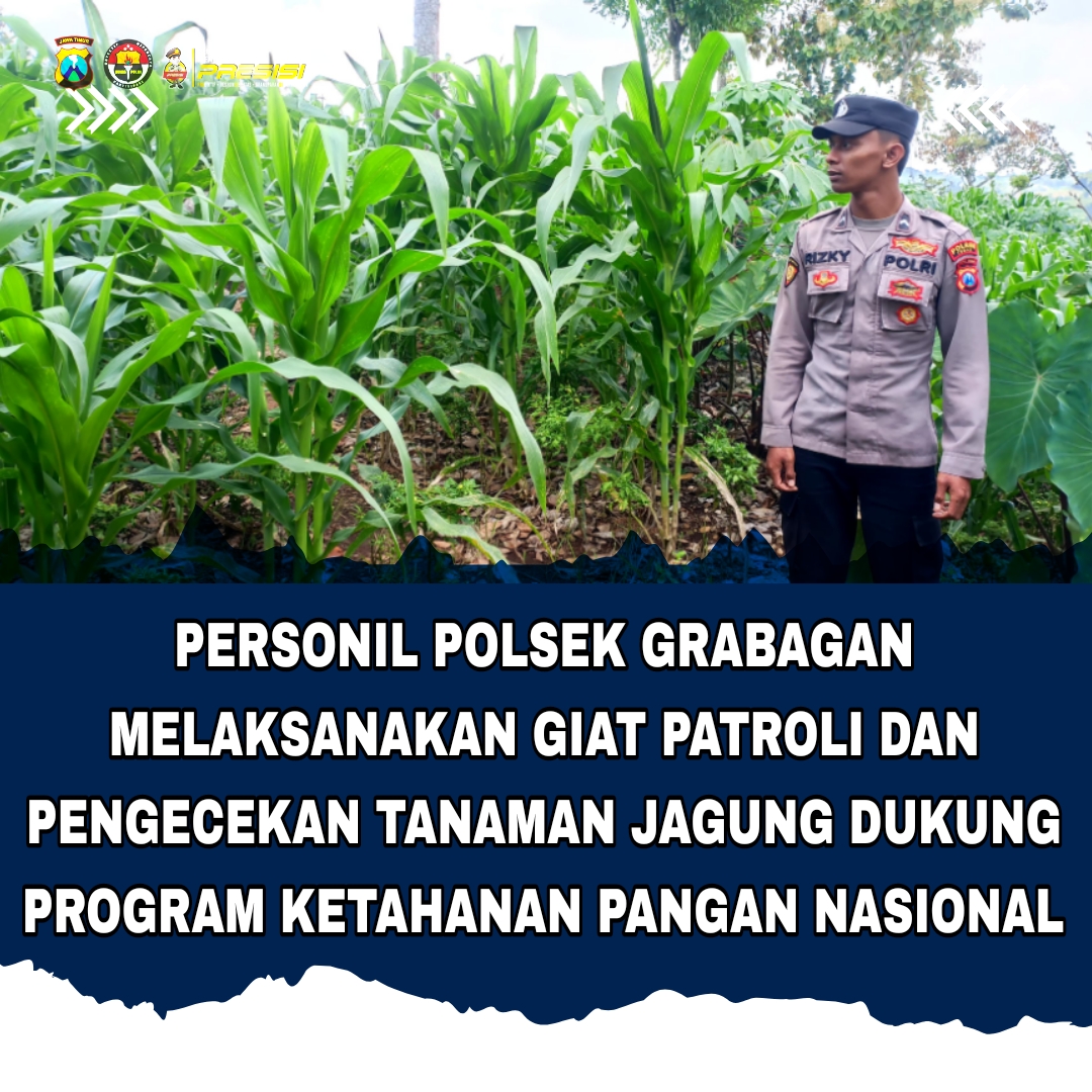 Polri dalam hal ini Polda Jatim khususnya Polres Grabagan mendukung program ketahanan pangan guna mewujudkan swasembada pangan Indonesia. Salah satu upaya nyata diwujudkan melalui kehadiran bhabinkamtibmas Desa Grabagan Polsek Grabagan Polres Tuban Polda Jatim melaksanakan kunjungan ke perkarangan milik warga Desa Grabagan kecamatan Grabagan Kabupaten Tuban.