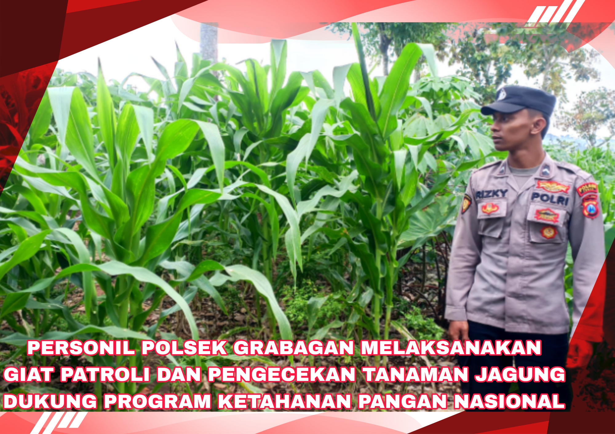 Polri dalam hal ini Polda Jatim khususnya Polres Grabagan mendukung program ketahanan pangan guna mewujudkan swasembada pangan Indonesia. Salah satu upaya nyata diwujudkan melalui kehadiran bhabinkamtibmas Desa Grabagan Polsek Grabagan Polres Tuban Polda Jatim melaksanakan kunjungan ke perkarangan milik warga Desa Grabagan kecamatan Grabagan Kabupaten Tuban.
